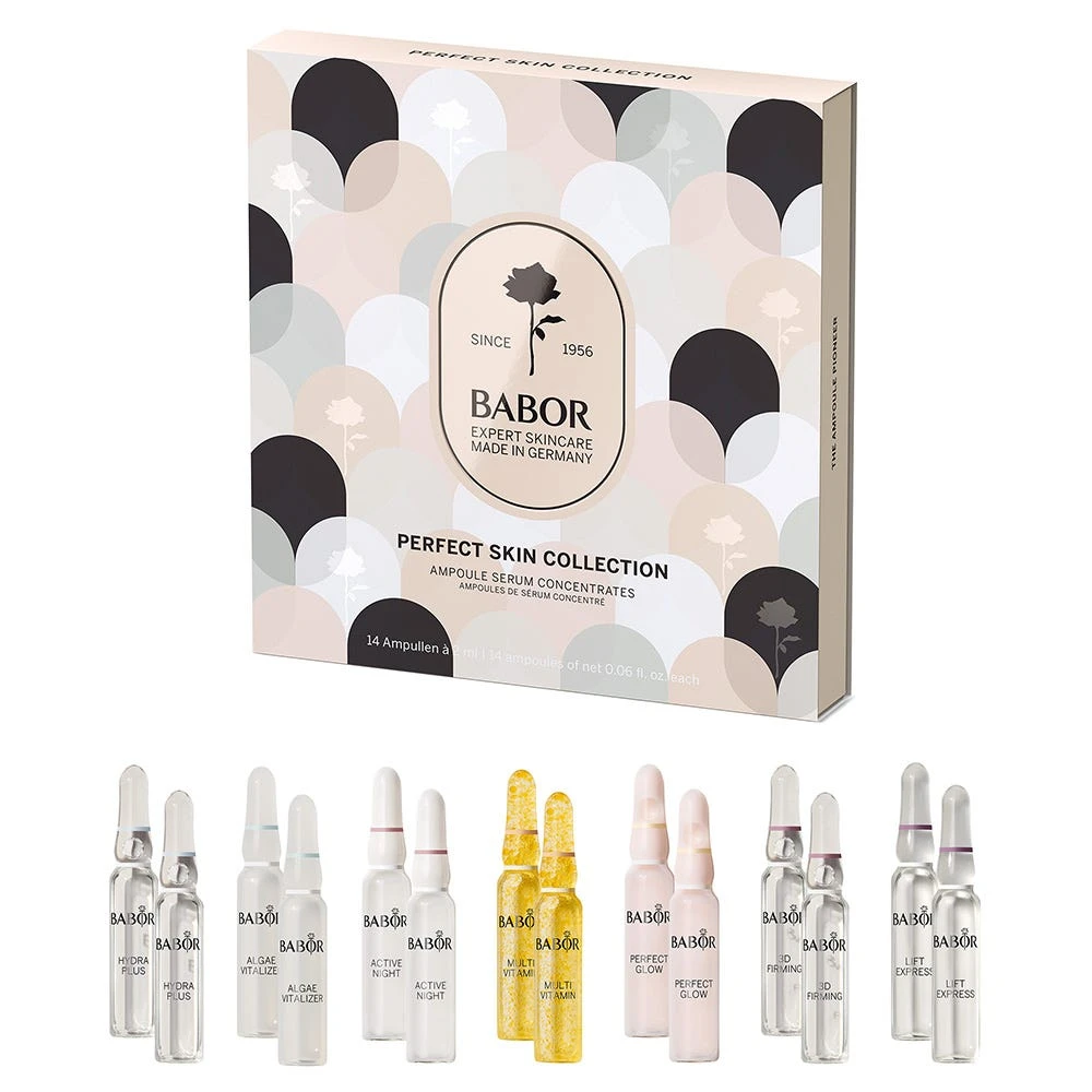 Die BABOR 14 Days Perfect Skin Collection ist eine perfekt abgestimmte 14-Tage Ampoule Serum Concentrates Intensiv-Kur, welche die Haut durch die ultimative Wirkstoffpower jeder einzelnen ikonischen Ampullen zum strahlen bringt. Die Kur startet mit Feuchtigkeit & Aufbau und endet mit Regeneration und abschließenden Anti-Aging. Für maximale, sichtbare Ergebnisse.