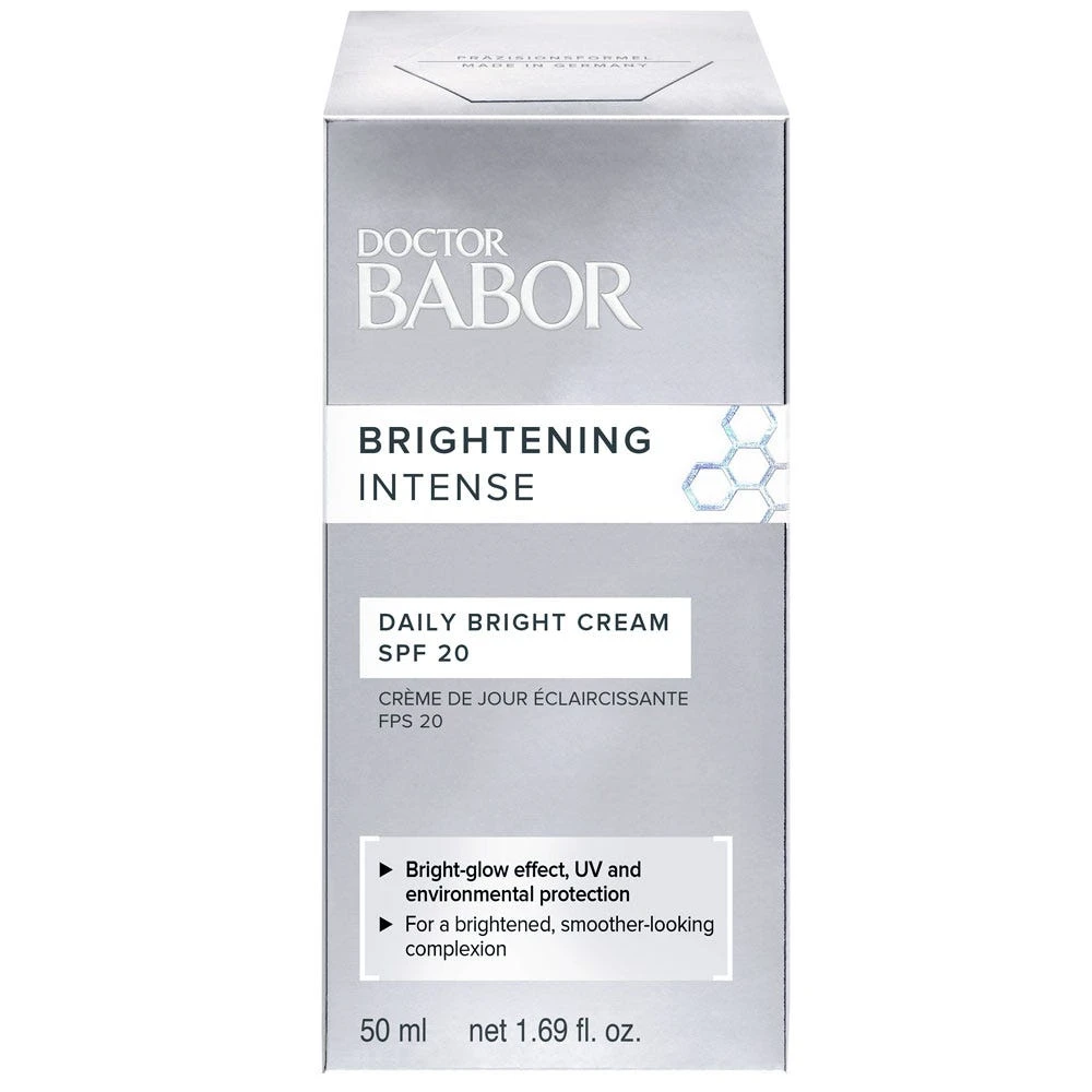 Die hochwirksame BABOR Doctor Babor Brightening Intense Daily Bright Cream SPF 20 wurde entwickelt, um Hautverfärbungen durch Alterung oder äußere Stressfaktoren zu verringern. Der EXP Bright-Komplex wirkt den Hautpigmenten Melanin und Lipofuscin entgegen. Ein Detox-Komplexschützt die Haut zusätzlich vor negativen Umweltbelastungen. UVA/B Filter beugen der Hautalterung durch UV-Belastung und daraus oxidativem Stress vor. Vitamin C unterstützt die Hautaufhellung und Bright Effect Pigmente verleihen der Haut einen sofortigen Glow Effekt. Für einen natürlich strahlenden, jugendlichen Teint.