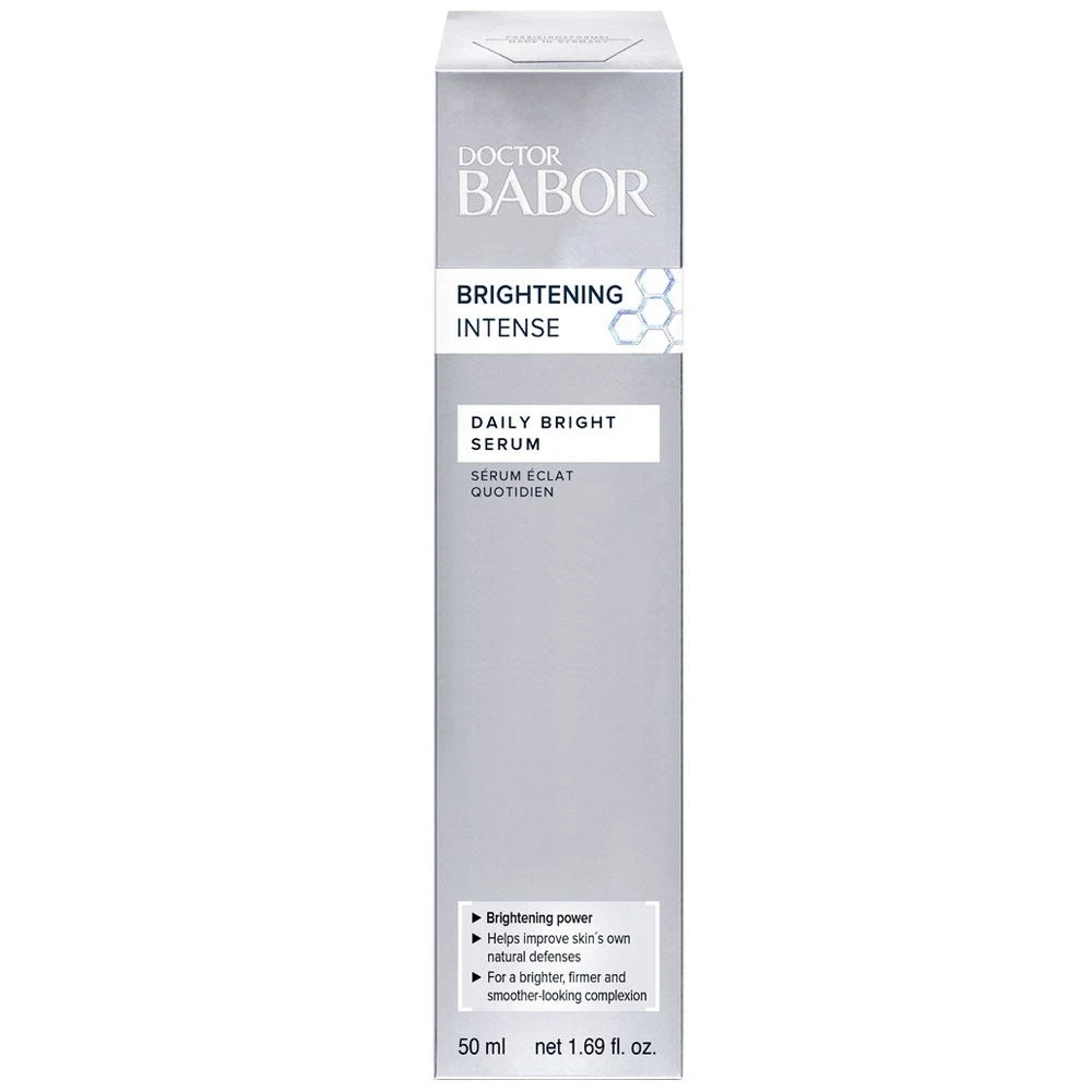 Das BABOR Doctor Babor Brightening Intense Daily Bright Serum ist ein leichtes, schnell absorbierendes Serum, das einen gelblich-braunen, dahlen Hautton in einen gleichmäßigen, strahlenden Teint verwandelt und die hauteigene Abwehrkraft verbessert. Der spezielle EXP Bright-Komplex wirkt den Hautpigmenten Melanin und Lipofuscin entgegen. Vitamin C unterstützt zusätzlich die Hautaufhellung. Bright effect Pigmente schenken der Haut einen sofortigen Glow-Effekt. Im Laufe der Zeit wird die Haut heller und strahlender. Für einen natürlich strahlenden, gleichmäßigeren Hautton.