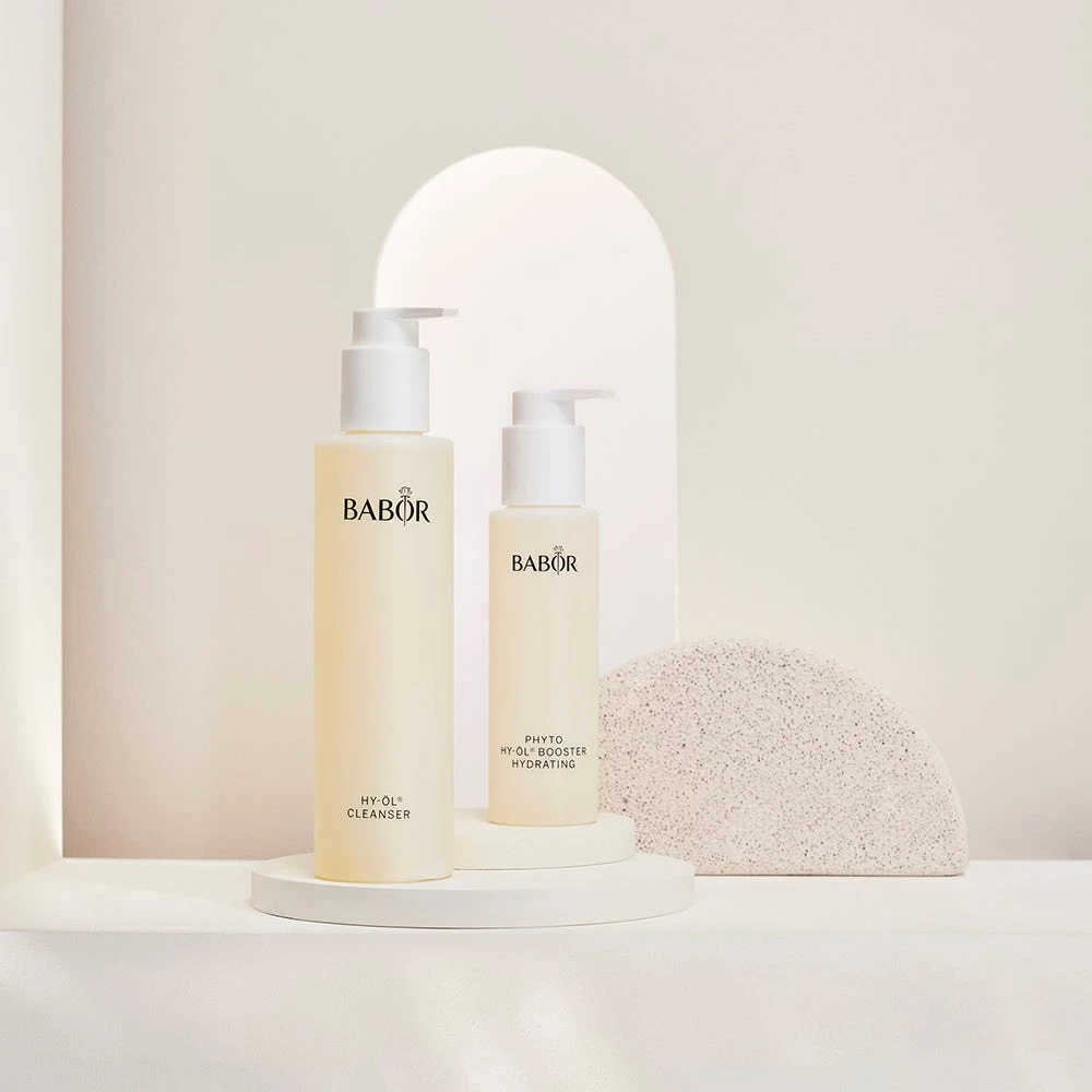 Der BABOR HY-ÖL Cleanser ist ein verwöhnende 2-Phasen Tiefenreinigung. Die sanfte Formel unterstützt eine intakte Hautbarriere und ein ausgeglichenes Mikrobiom. Die besondere Kombination aus natürlichen Ölen aus Soja, Sesam und Erdnuss mit hydrophiler Eigenschaft löst sanft alle Arten von öl- und wasserlöslichen Schmutzpartikeln und bewahrt dabei den Lipidmantel der Haut. Mit Vitamin E, Bisabolol und Quillaja-Extrakt, der wie ein Schmutzmagnet wirkt. Zusammen mit dem auf den individuellen Hauttyp abgestimmten Pflegezusatz Phyto HY-ÖL Booster wird die Haut vor negativen urbanen Umwelteinflüssen geschützt und zeigt sich aufnahmefähiger für die nachfolgende Pflege. Das Ergebnis ist porentief reine und zarte Haut ohne Spannungsgefühle oder ölige Rückstände.