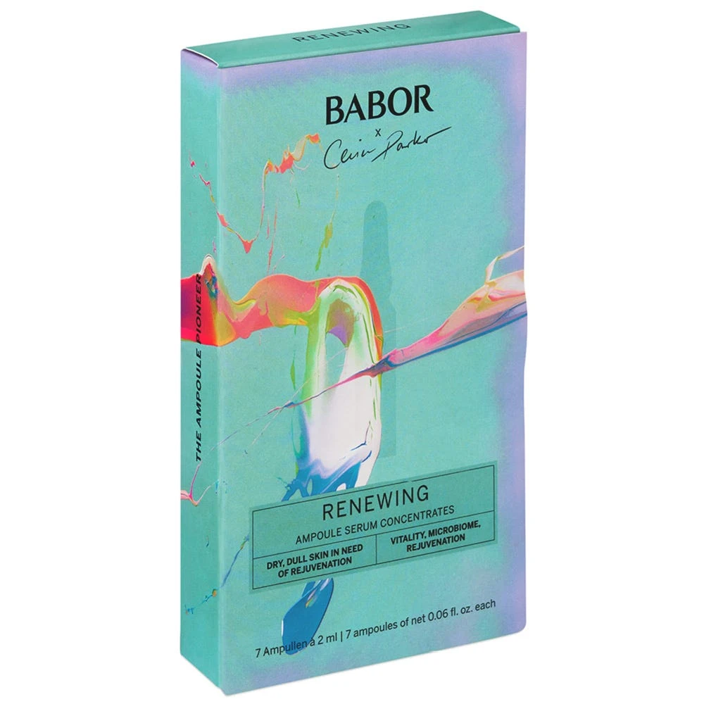 Die BABOR Renewing Ampoule für vitalisiert, gestärkt und erfrischt wirkende Haut in nur 7 Tagen. Die Algae Vitalizer Wirkstoffe aus Plankton- und Grünalgen Extrakten spenden intensiv Feuchtigkeit, vitalisieren und reduzieren bei regelmäßiger Anwendung die Faltentiefe. Ein probiotischer Wirkstoff unterstützt das Hautmikrobiom und stärkt die Hautbarriere. Ein Power Cocktail der Multi Vitamin Ampulle aus Vitamin A, C, E, B5, B3, Calcium und Biotin ist der ultimative Booster für mehr Vitalität, gepflegte, geschützte und gestärkte Haut. Inhalt: 4x BABOR Ampoule Concentrates Algae Vitalizer und 3x BABOR Ampoule Concentrates Active Night.