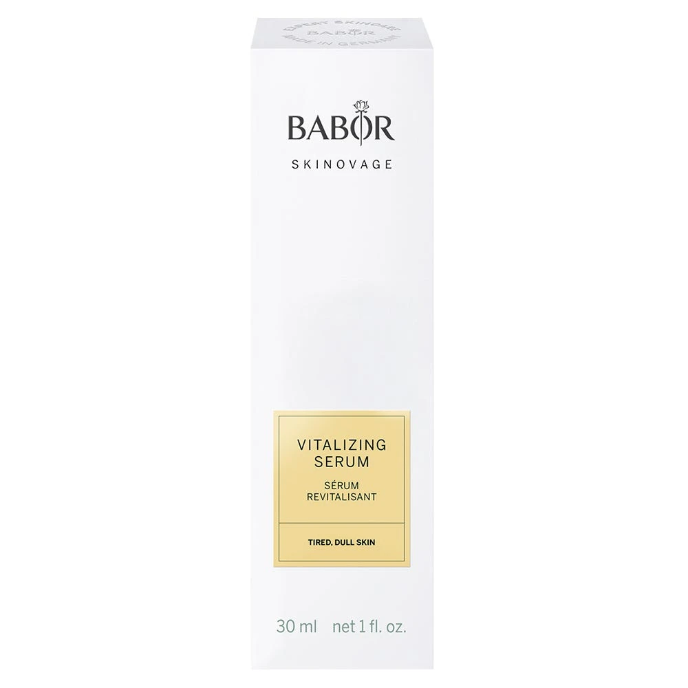 Das BABOR SKINOVAGE Vitalizing Serum ist ein exklusives Serum, das durch eine Kombination von ATP und Algin hilft, das Feuchtigkeitslevel der Haut zu verbessern und die Haut zu revitalisieren. Der enthaltene Papaya Extrakt trägt dazu bei, abgestorbene Hautzellen zu eliminieren und die Hauterneuerung zu unterstützen. Gleichzeitig schützt der enthaltene Kakaoextrakt die Haut vor Schäden durch blaues Licht (Digital Aging). Die Haut zeigt sich ebenmäßiger, vitaler, firscher mit mehr Ausstrahlung.